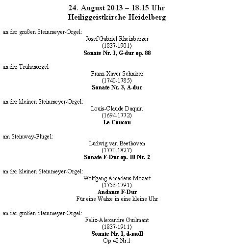 "Dabei war alles ganz einfach: Mit Johann Sebastian Bachs Praeludium und Fuge G-dur (BWV 541) beginnt der Organist und mach aus diesem wuchtigen Opus ein Kleinod der herrlichsten und verführerischsten Klänge, zum Greifen nach aufgereiht, wie an einer schwer-goldenen Kette. Die Fuge mit ihrem prägnanten Thema schreitet nobel und würdevoll einher - und überall sieht man Juwelen strahlen."