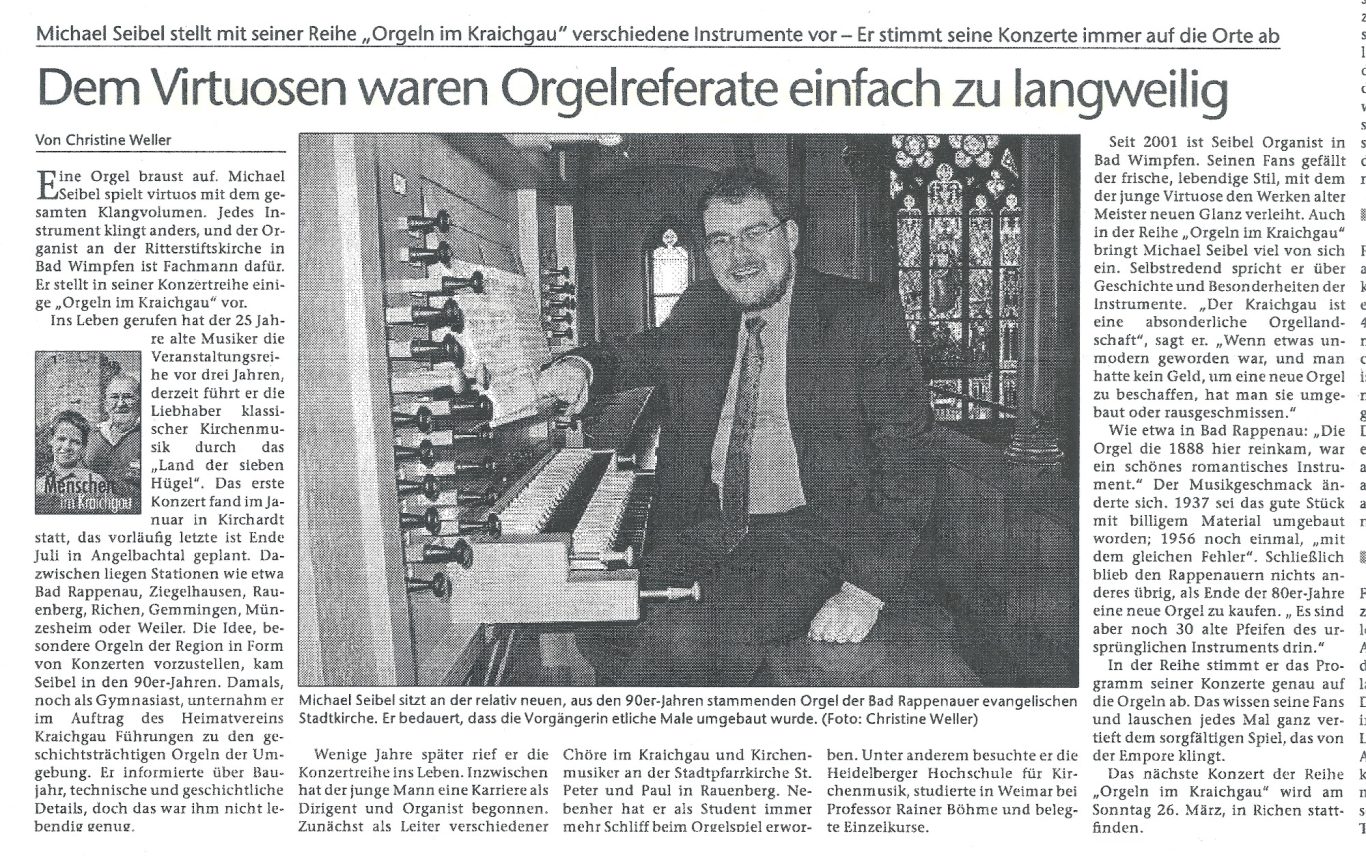 "Michael Seibel bewies sich als ganz großartiger Interpret mit einer durchdringenden Musikalität, die durchdachte Registrierungslösungen bietet, und mit vollendeter Technik."