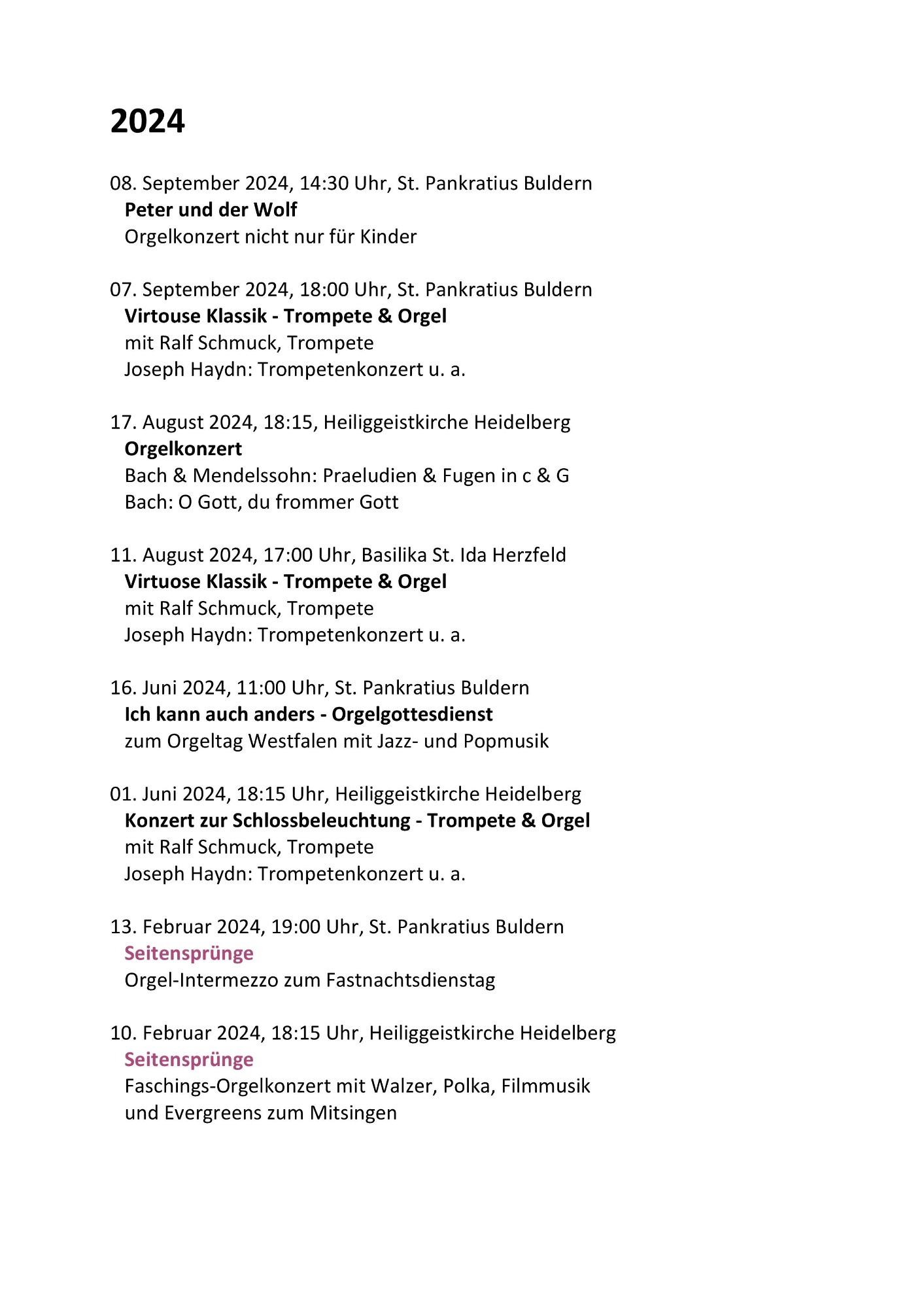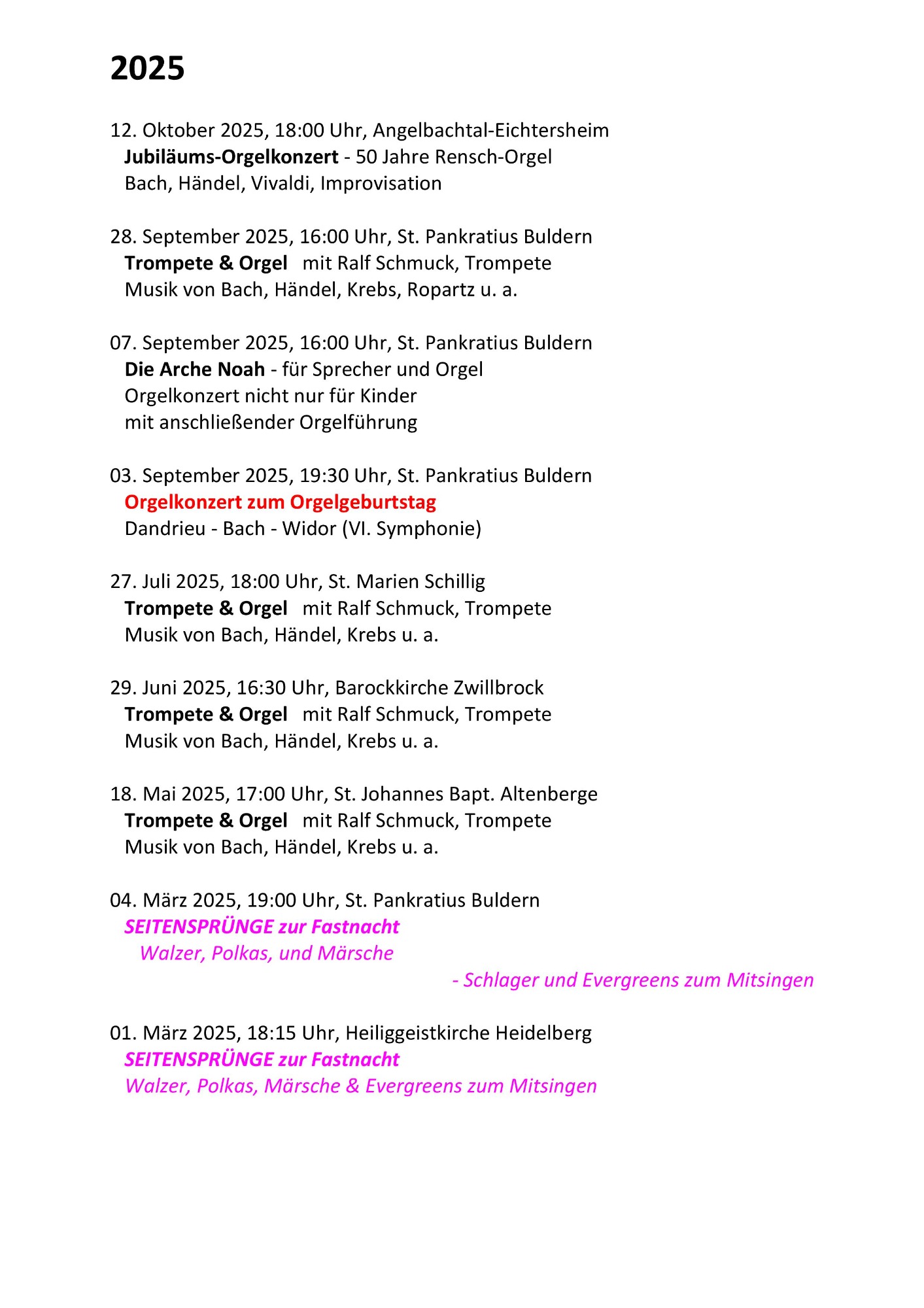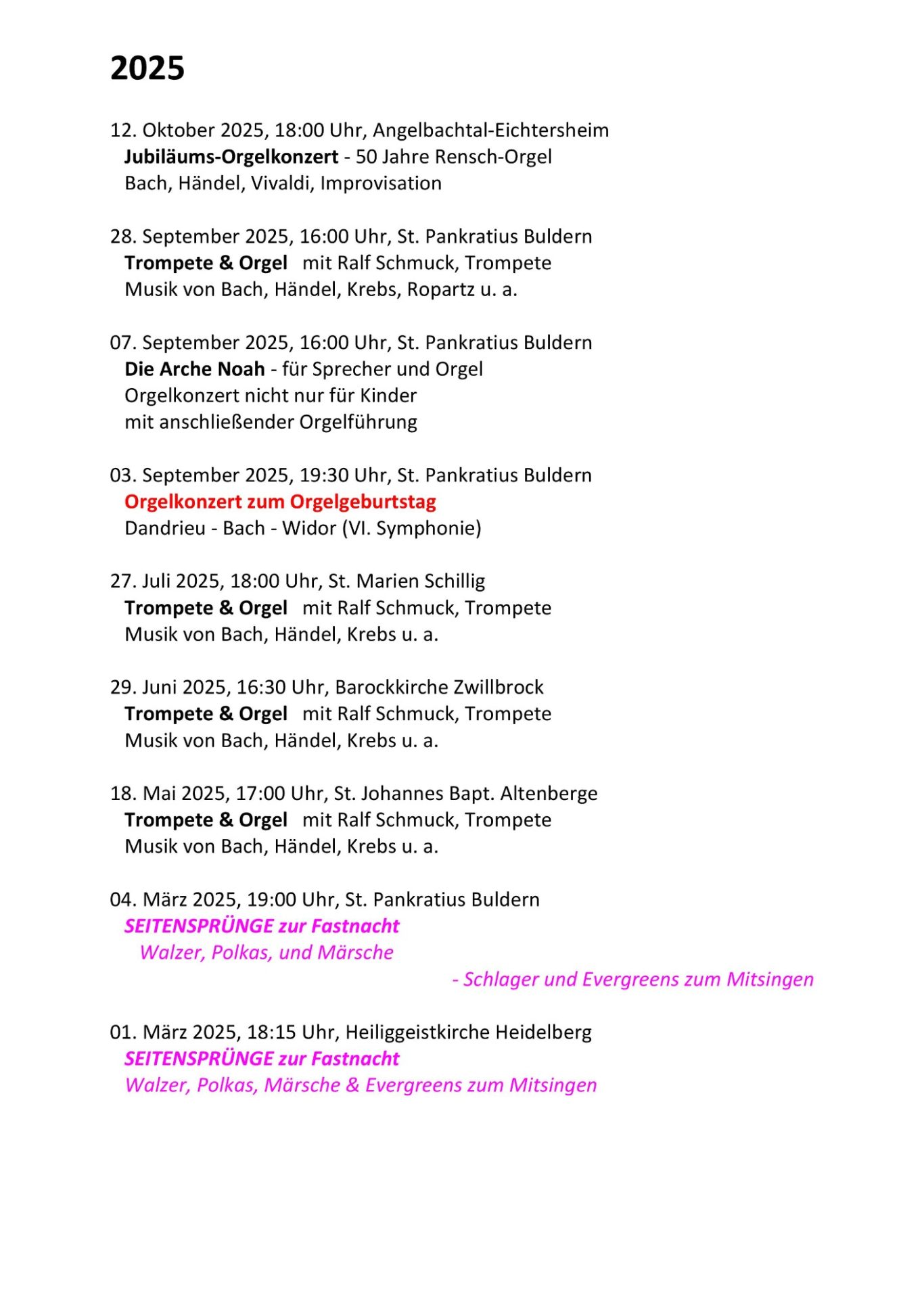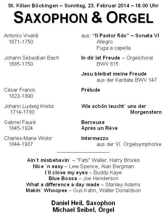 Orgelkonzert zu Fastnacht