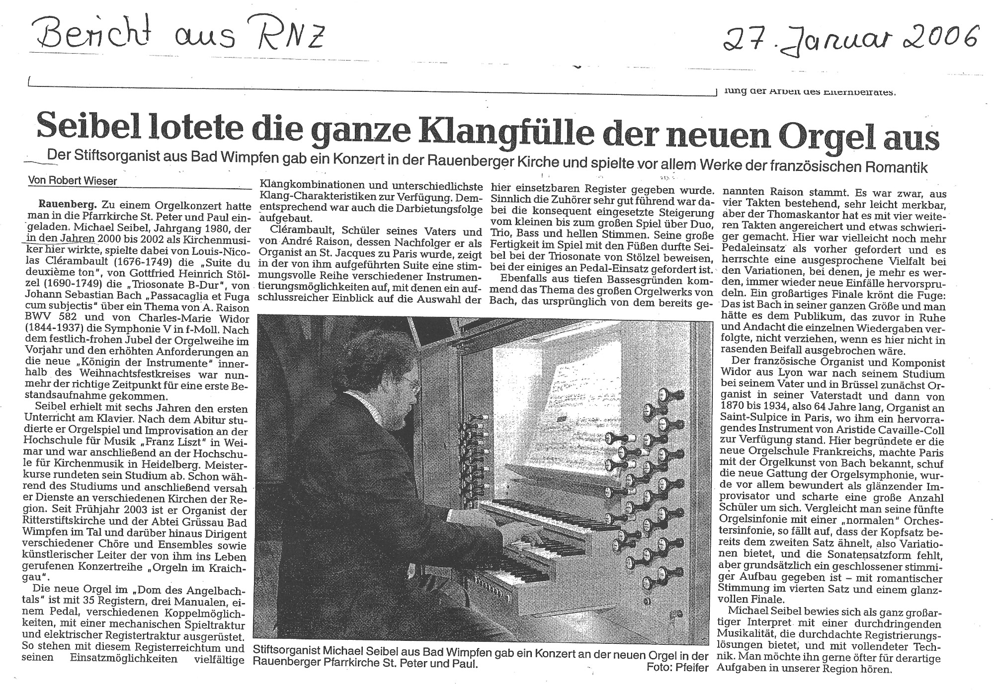 "Michael Seibel bewies sich als ganz großartiger Interpret mit einer durchdringenden Musikalität, die durchdachte Registrierungslösungen bietet, und mit vollendeter Technik."